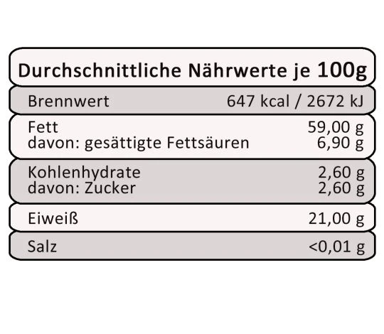 Nährwerttabelle pro 100g: